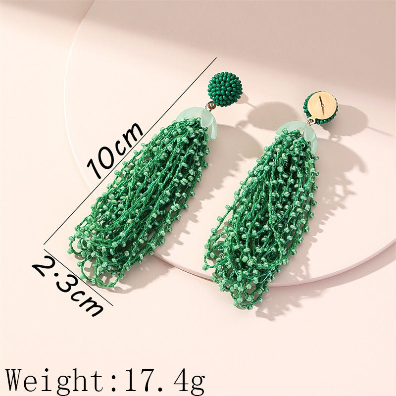 أقراط طويلة من خرز الأرز للنساء، أقراط على الطراز البوهيمي القديم