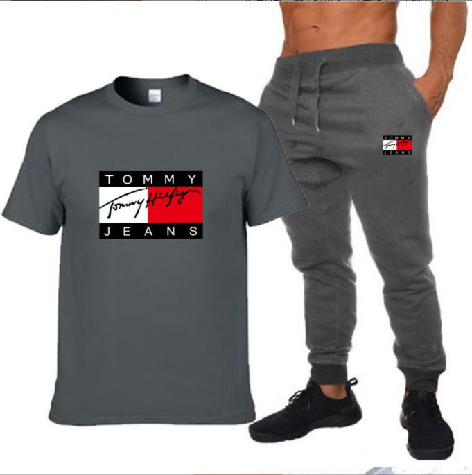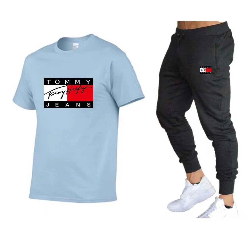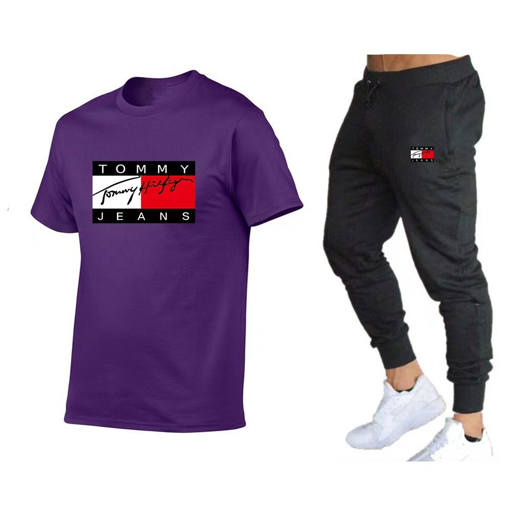 طقم تي شيرت قطني رياضي عصري بأكمام قصيرة، طقم تي شيرت للياقة البدنية للجنسين