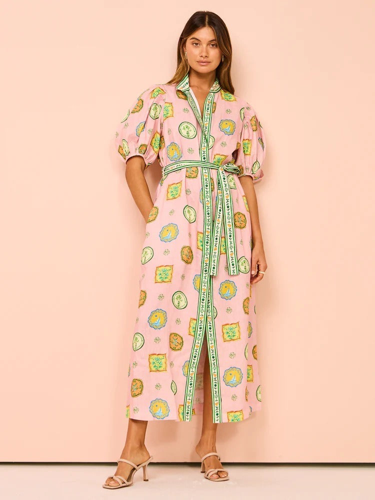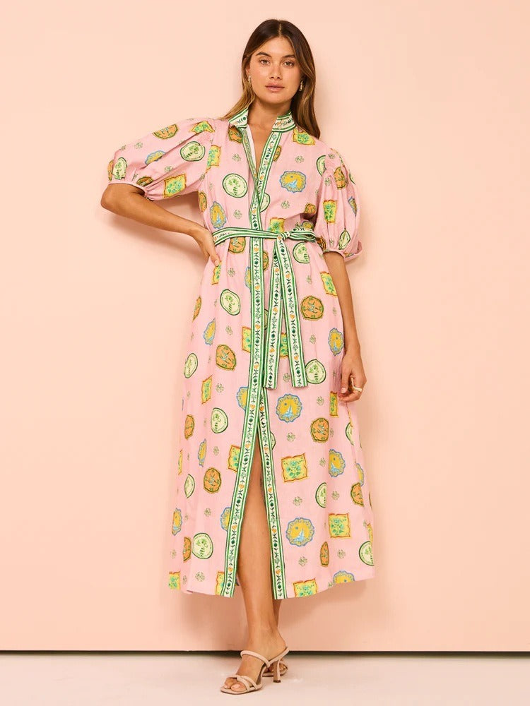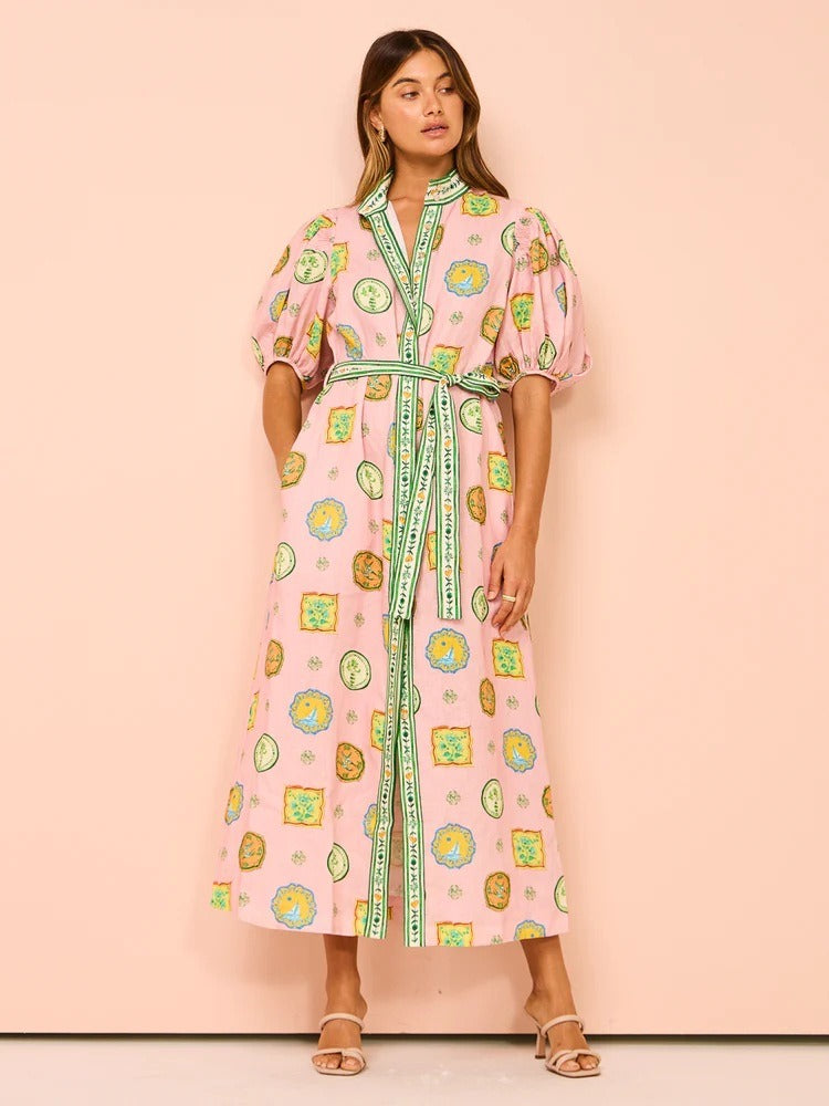 Personalized graffiti lantern sleeve cardigan casual printed shirt for women