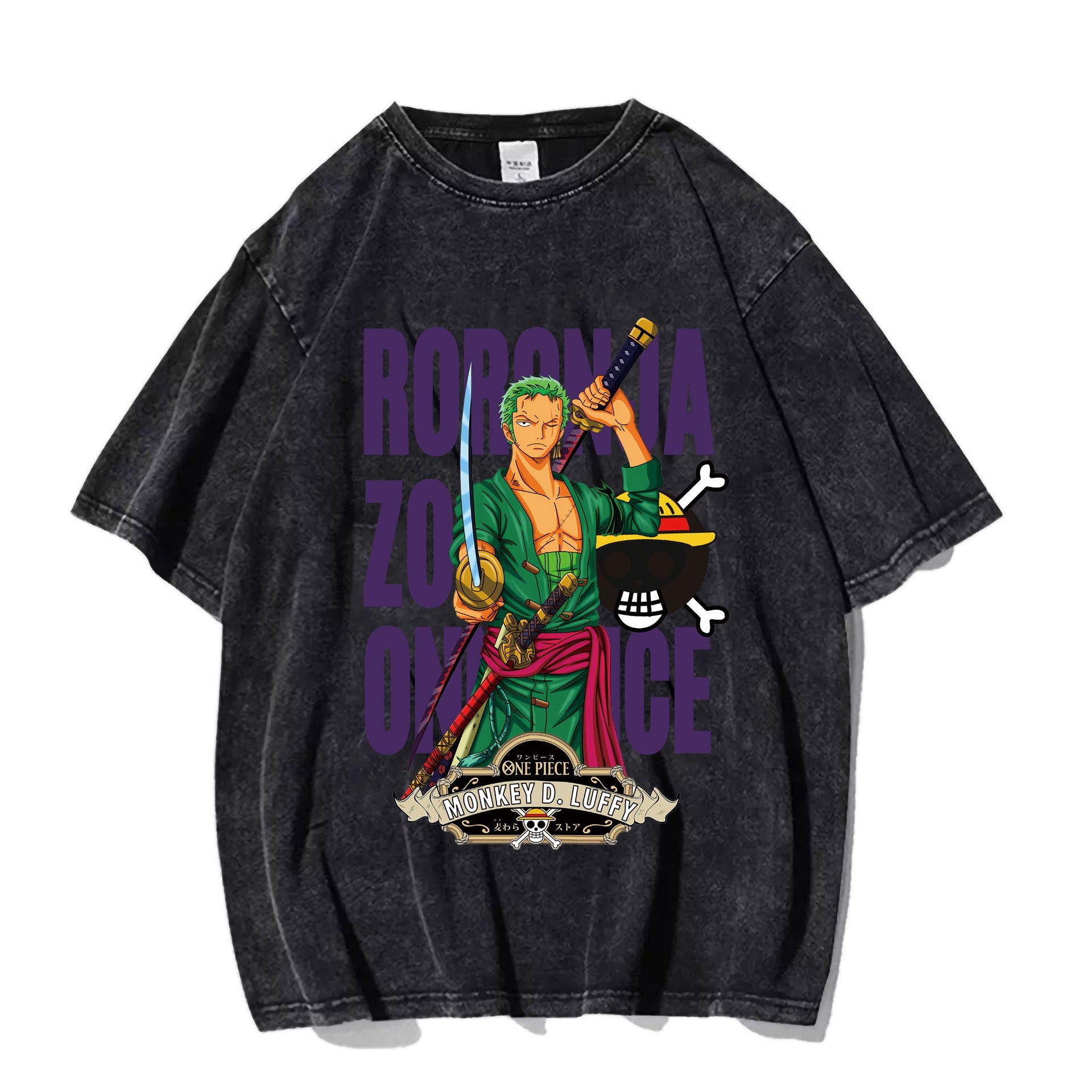 Washed old pirate king Solon pure cotton short sleeved T-shirt trendy Japanese anime Zoro