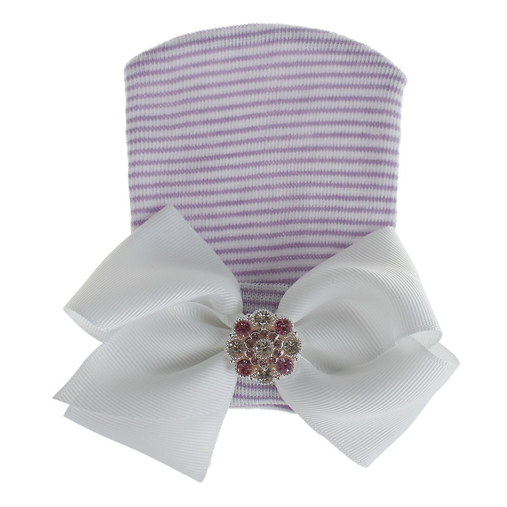 European and American Big Bow Glittering Diamond Pink Stripe Girl Baby Knitted Hat Newborn Baby Pullover Hat