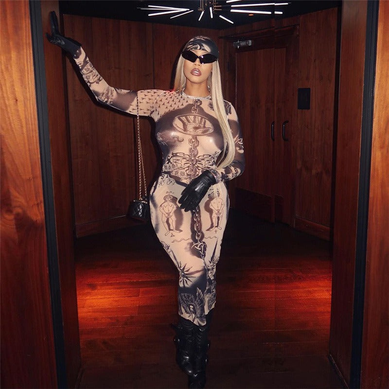 Trendy and Personalized Street Digital Print High Waist Perspective Dress for Women