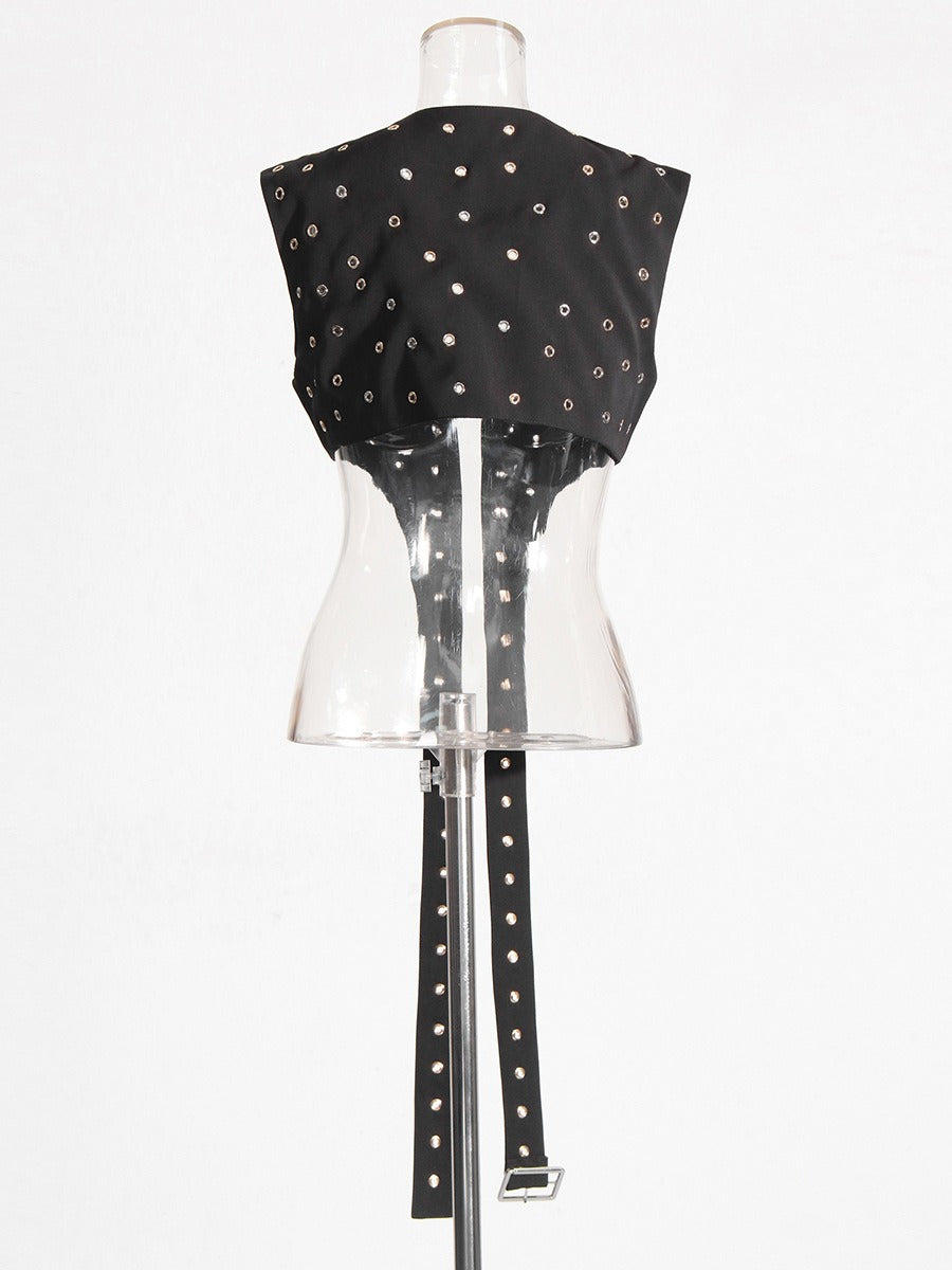 Vest Fashion Versatile Lace up Handmade Rivet Sleeveless Tank Top for Women