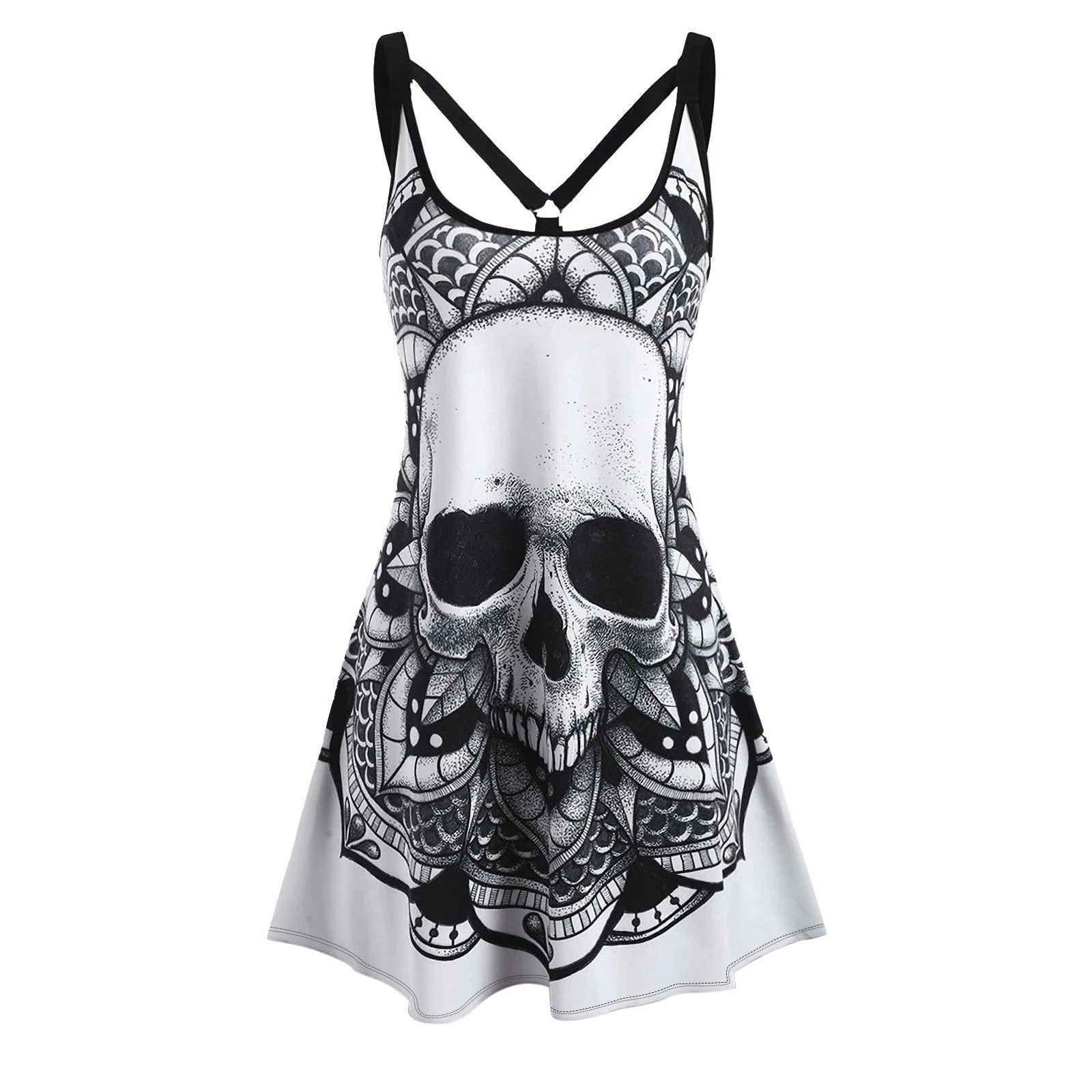 Women's sleeveless printed tank dress, fashionable women's casual backless Gothic dress, Halloween
