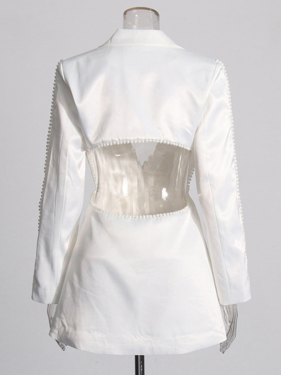 Heavy industry nail bead design women's hollow flower suit jacket+high waisted micro flared pants set