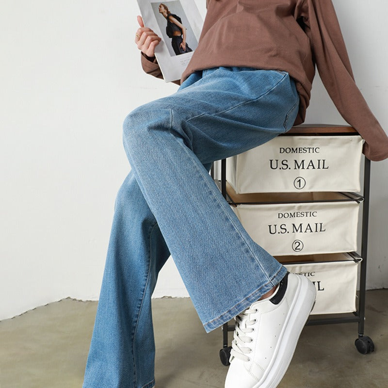 Pregnant women's denim wide leg floor mop soft underbelly pants plus size
