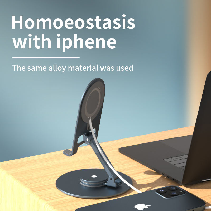 Rotatable foldable portable wireless charging desktop magnetic phone holder aluminum alloy magsafe holder
