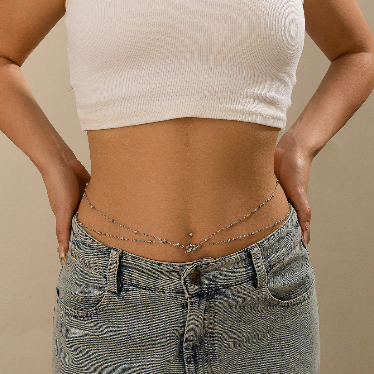 Trendy round bead alloy tassel pendant waist chain BodyChain simple temperament waist accessory for women