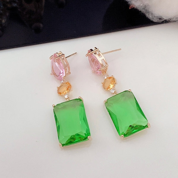 Pink Droplet Geometric Square Earrings Light Luxury Contrast Color Transparent Zircon Candy Color Fashion