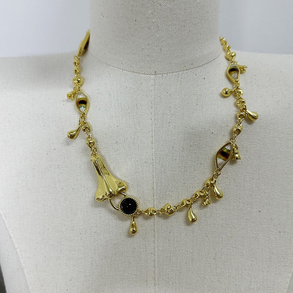 Retro quirky personality, ears, eyes, nose necklace, fashionable temperament, collarbone chain trend